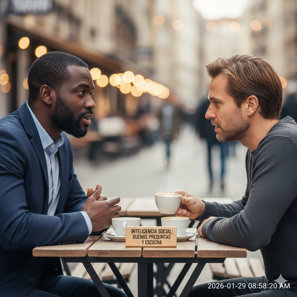 Esto no solo te hace infinitamente más atractivo e interesante para los demás, sino que también es una forma de aprendizaje constante. Cuando escuchas activamente, obtienes información valiosa sobre personas, negocios y la vida. Es un pequeño hábito social que te convierte instantáneamente en el hombre más carismático y perceptivo de la sala.