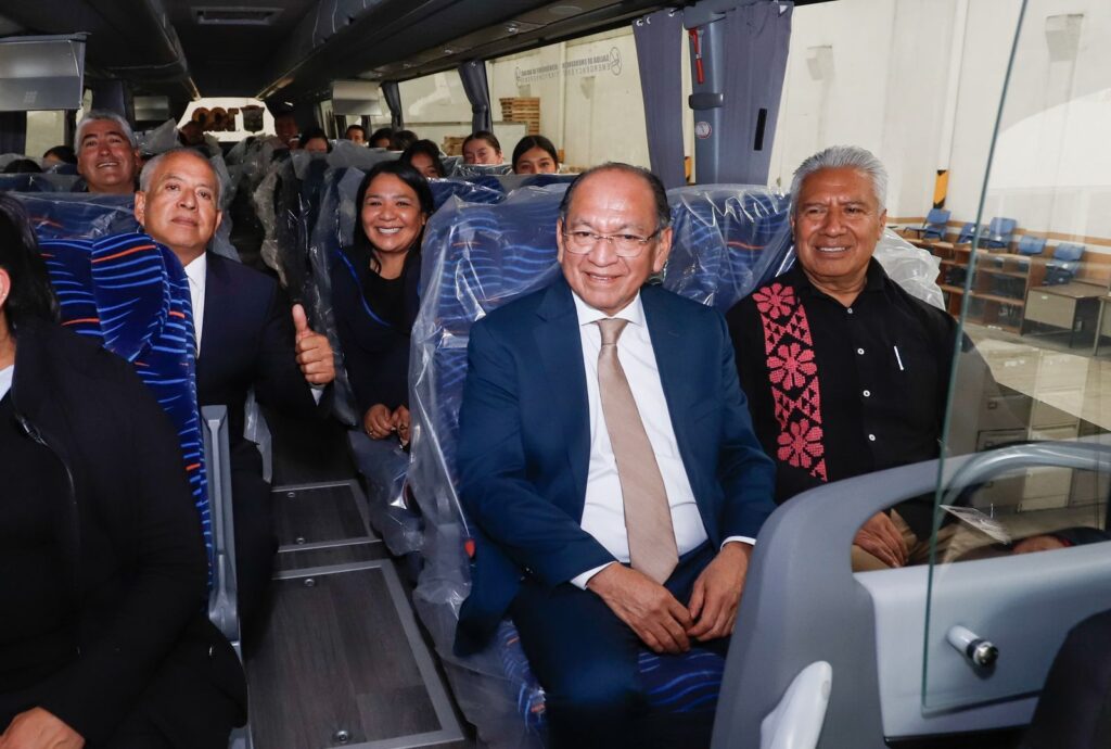 CIUDAD DE PUEBLA, Pue.- En cumplimiento a los acuerdos que se han tomado a lo largo de 18 mesas de diálogo que el Gobierno del Estado de Puebla ha sostenido con las estudiantes de la Normal Rural “Carmen Serdán”, los secretarios de Gobernación y de Educación Pública, Samuel Aguilar Pala y Manuel Viveros Narciso, respectivamente, hicieron entrega del autobús gestionado ante la autoridad federal, tras 16 años de haber hecho la solicitud, que hasta esta administración se realizó.